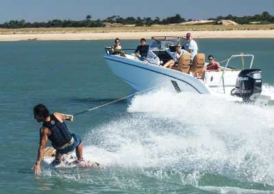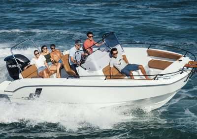 Prices include VAT (IVA), insurance and safety equipment. If you don’t have a licence to drive this boat, you can contract a professional skipper or take a course before you rent. Skipper 4h (am or pm): 100€ Skipper 8h (all day): 150€ You can also choose to rent this boat and do an RYA Powerboat course or the Spanish boat licence.