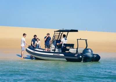 “Fifty5” is a Zodiac Open 5.5 RIB (Rigid Inflatable Boat). She is a brand new boat for this season (2021), especially chosen for ease of handling and stability.