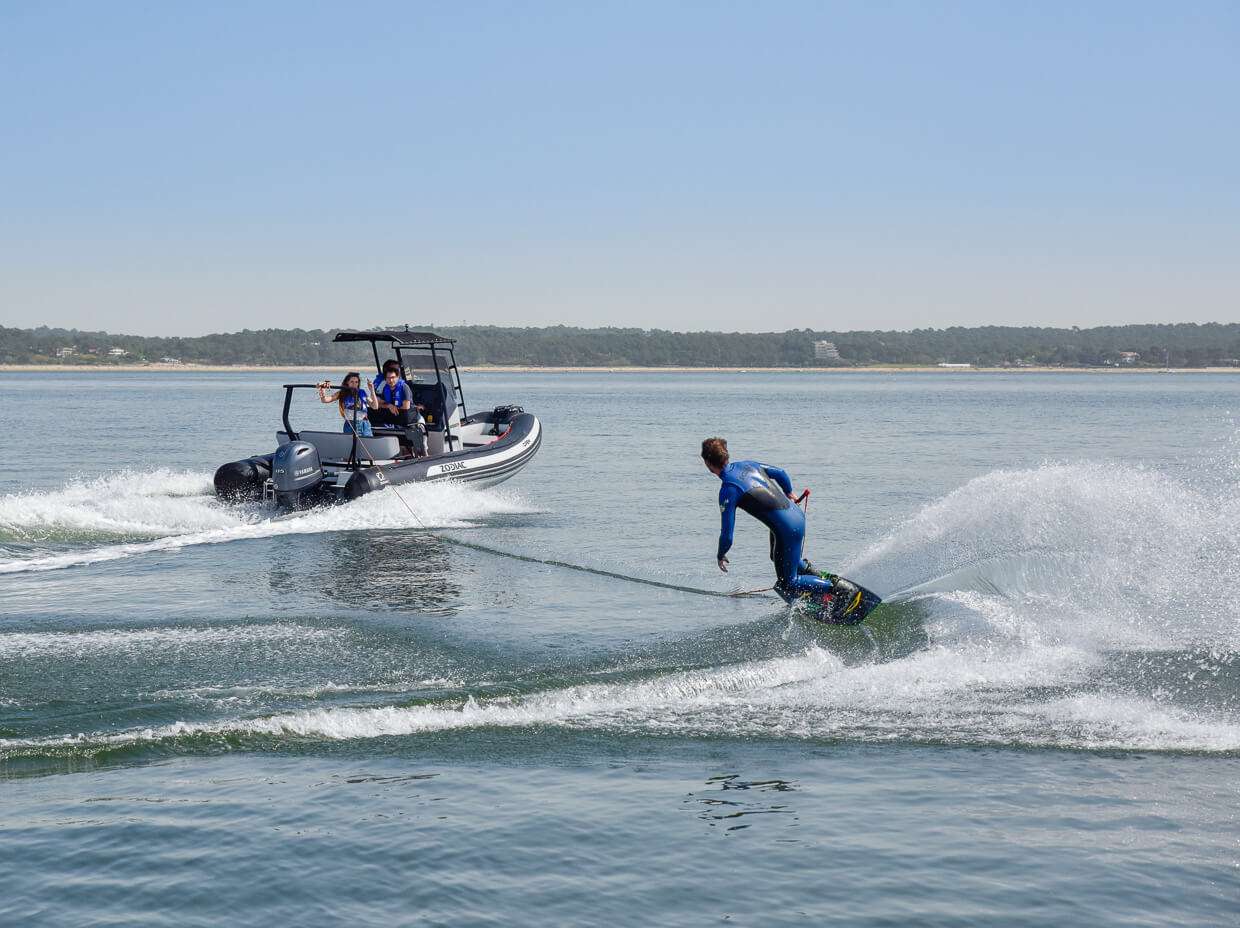 Fast, agile and virtually unsinkable, the Zodiac Open 5.5 is an ideal boat for beginners and small groups of up to 6 adults (or groups of up to 8 with adults and children aboard). The Zodiac Open 5.5 RIB is small but versatile, perfect for exploring the beautiful coves of the Costa Blanca or for a thrilling day out with water sports.